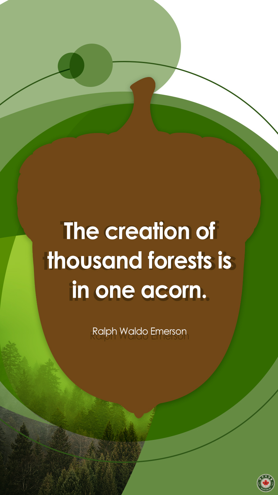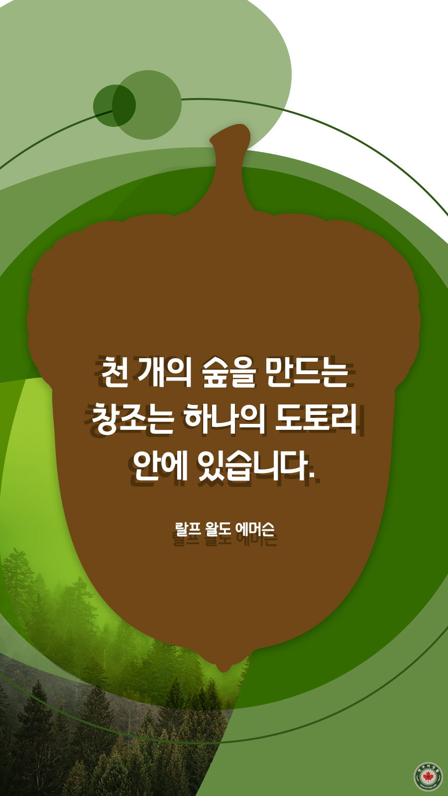 "천 개의 숲을 만드는 창조는 하나의 도토리 안에 있습니다."