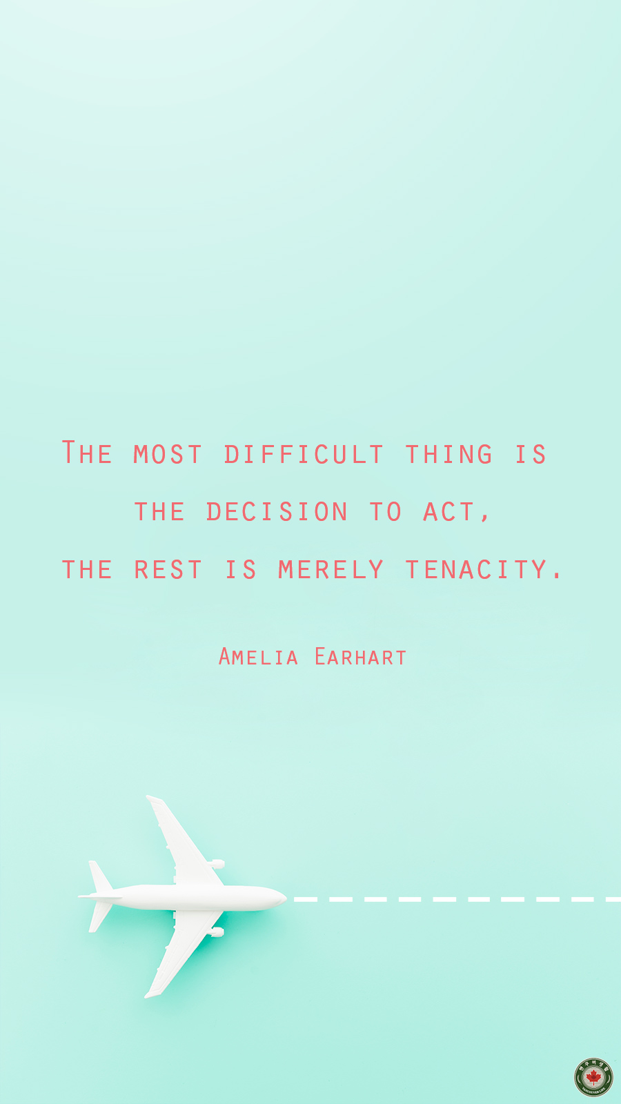 "The most difficult thing is the decision to act, the rest is merely tenacity."